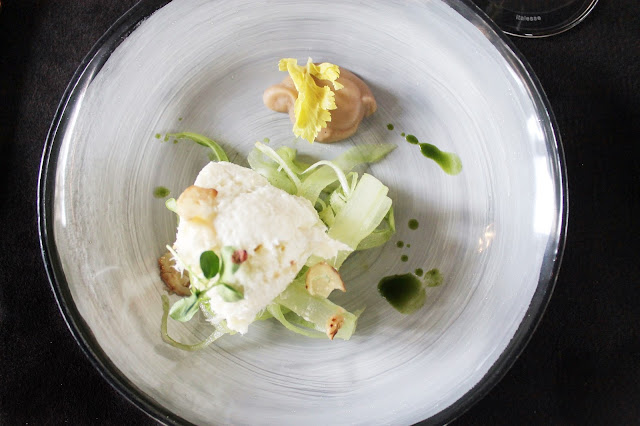 Passatelli asciutti, cardi, Parmigiano e burro al profumo di cipresso firma inconfondibile della cucina vegetale dello chef Parini.
