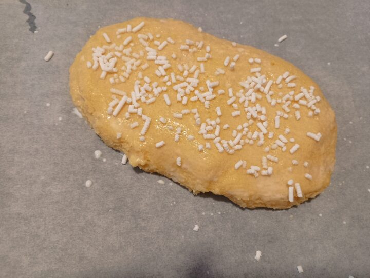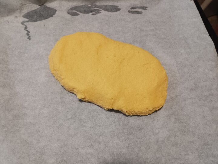 Disporre il panetto su una teglia rivestita da carta forno dandogli una forma ovoidale.