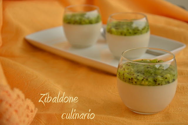Distribuire i kiwi sulla superficie del biancomangiare ben freddo.