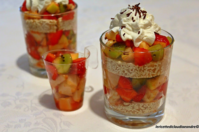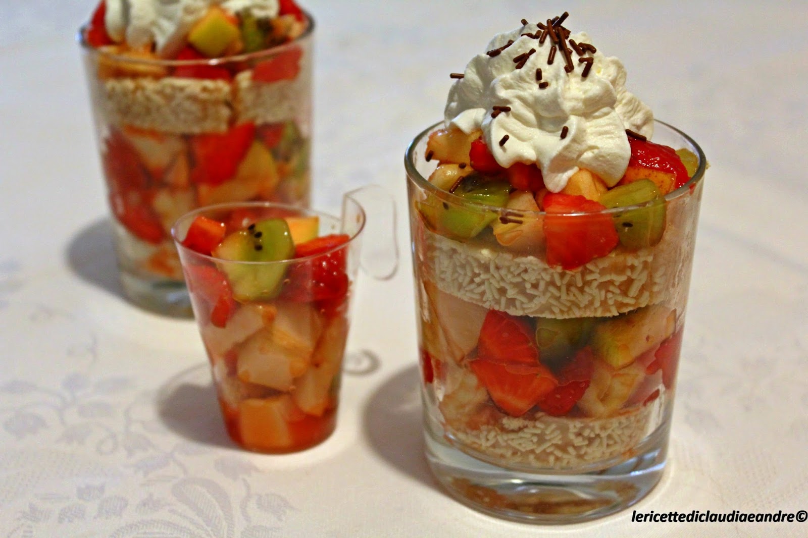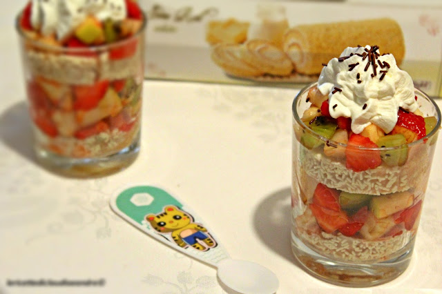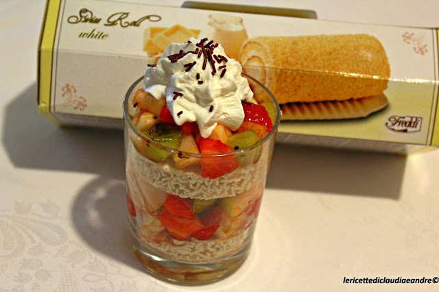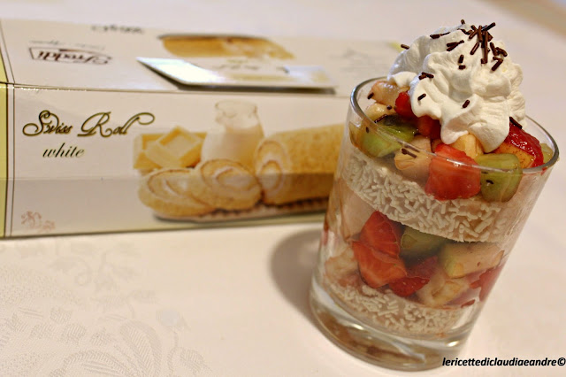 Bicchieri golosi con macedonia di frutta, Roll Swiss White e panna