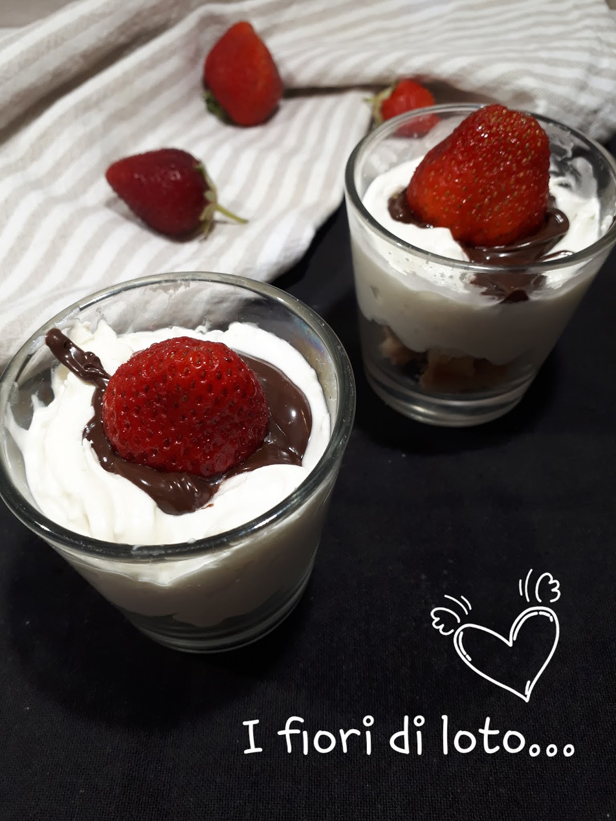 Fate uno strato abbastanza consistente di panna e ricoprite il tutto con nocciolata e una grossa fragola.