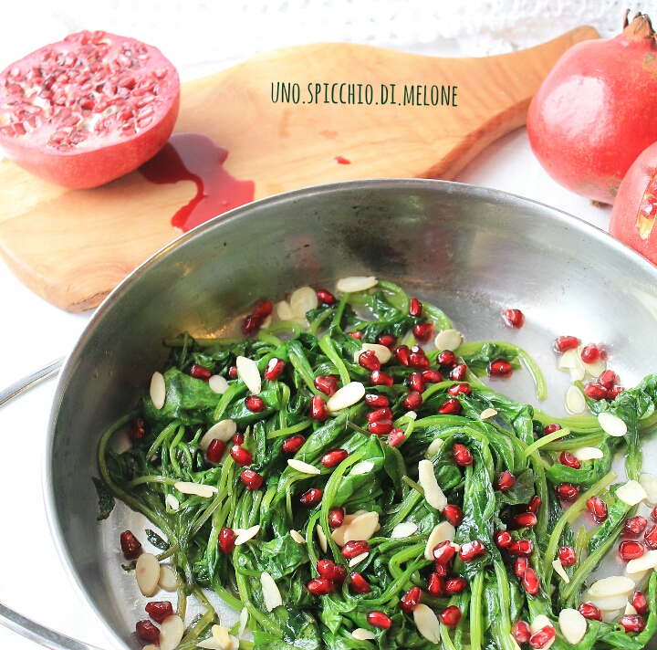 La BIETOLA saltata in padella al MELOGRANO senza utilizzare aglio è un contorno alternativo e molto salutare.