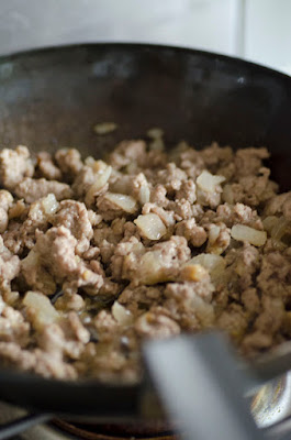 Rosolate la cipolla tagliata fine con l’olio, aggiungete il macinato d’anatra, e fate rosolare bene la carne.