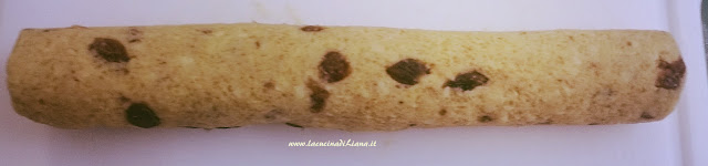 Quindi riprendere il cilindro e affettarlo nei biscotti che dovranno essere altri circa 0.5 cm. Disporli su una teglia rivestita di carta forno, e cuocerli a 180° per 15- 20 minuti.