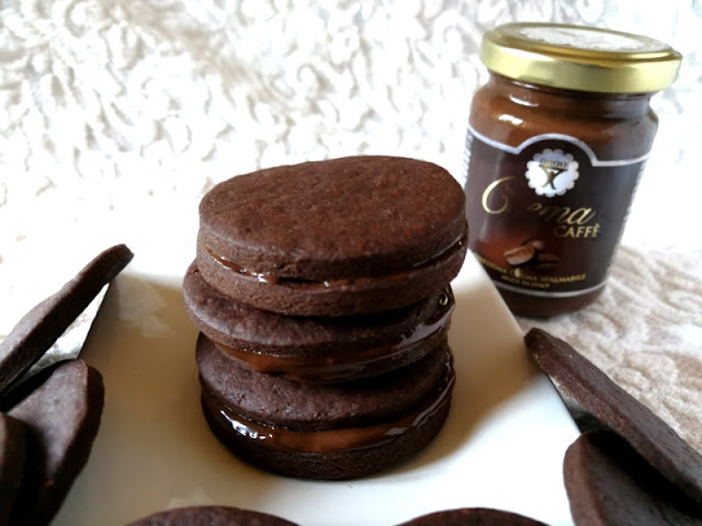 E se li si farcisce con una crema golosa al caffè, sempre in questa versione regalatami a Natale o con la storica Nutella che tutti ci invidiano e nessuno prepara così buona ( parola di un mio amico che abita a New York) il semplice biscottino diventa un goloso dessert!
