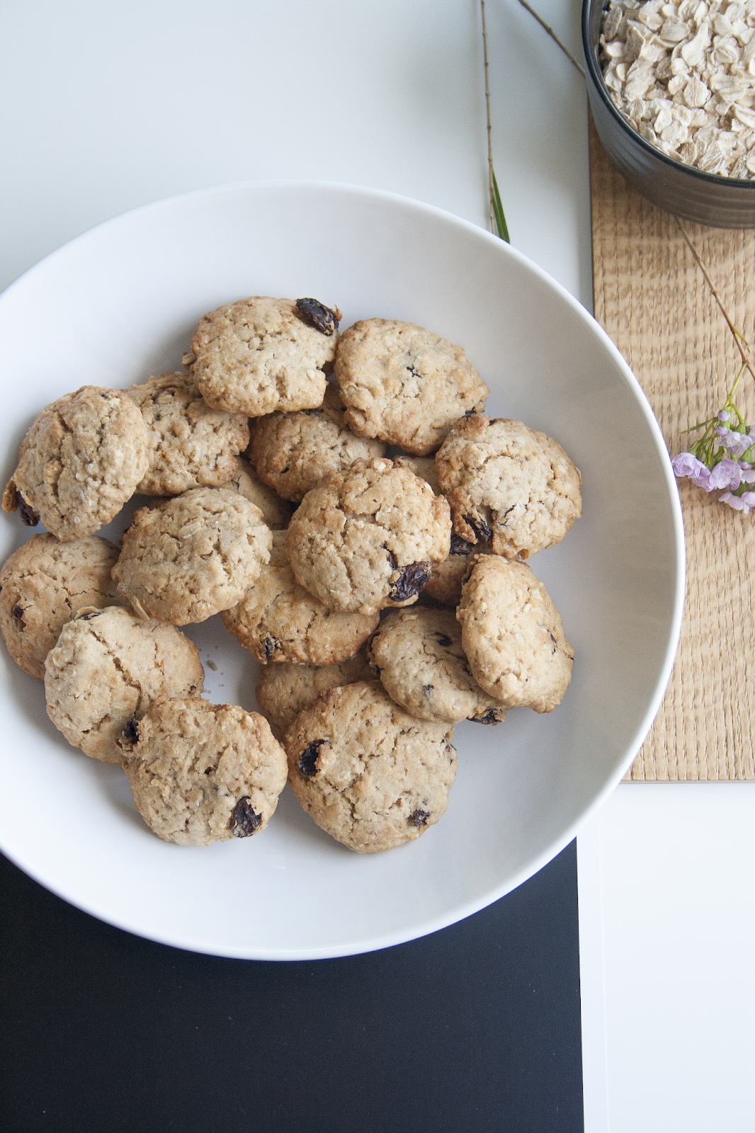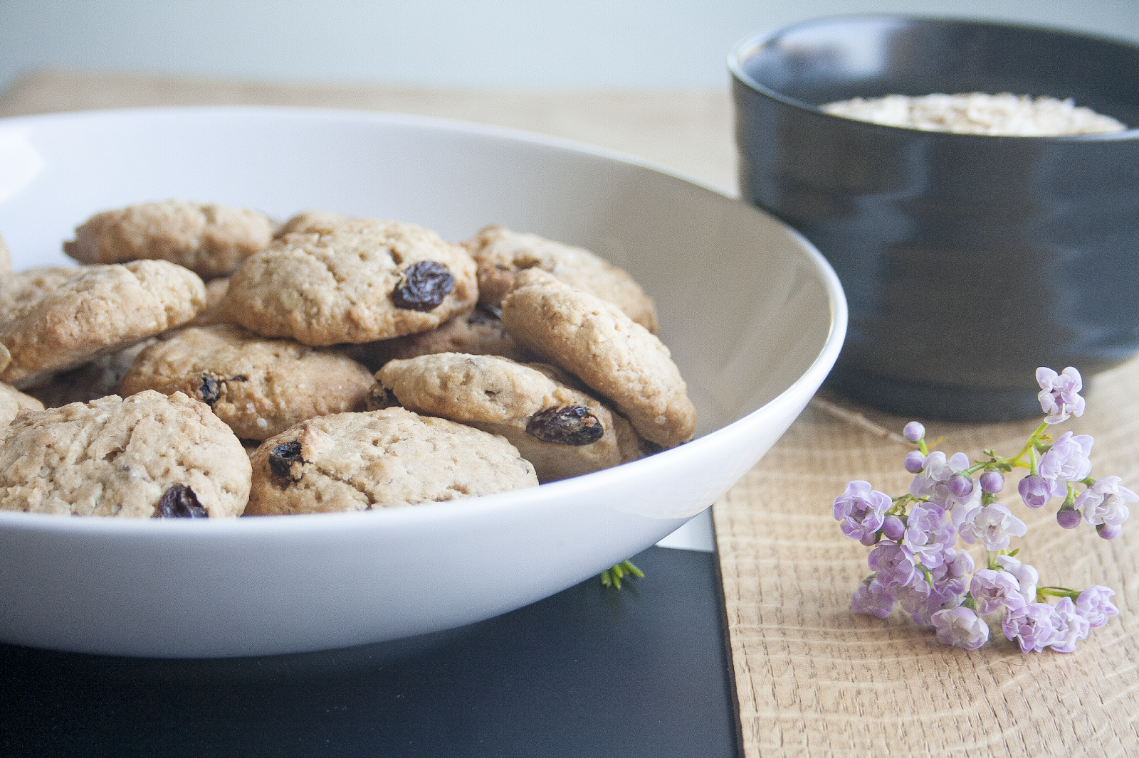 I biscotti al farro, fiocchi d’avena e uvetta sultanina sono molto semplici da fare in casa, preparati con ingredienti genuini e senza le uova.