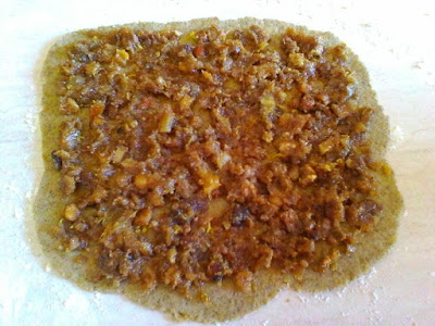 Per la farcia frullate in un robot le noci e le nocciole insieme allo zucchero e alle bucce di limone e di arancia. Amalgamate il tutto con la marmellata di limoni. Tenete presente che il composto non deve essere morbido.