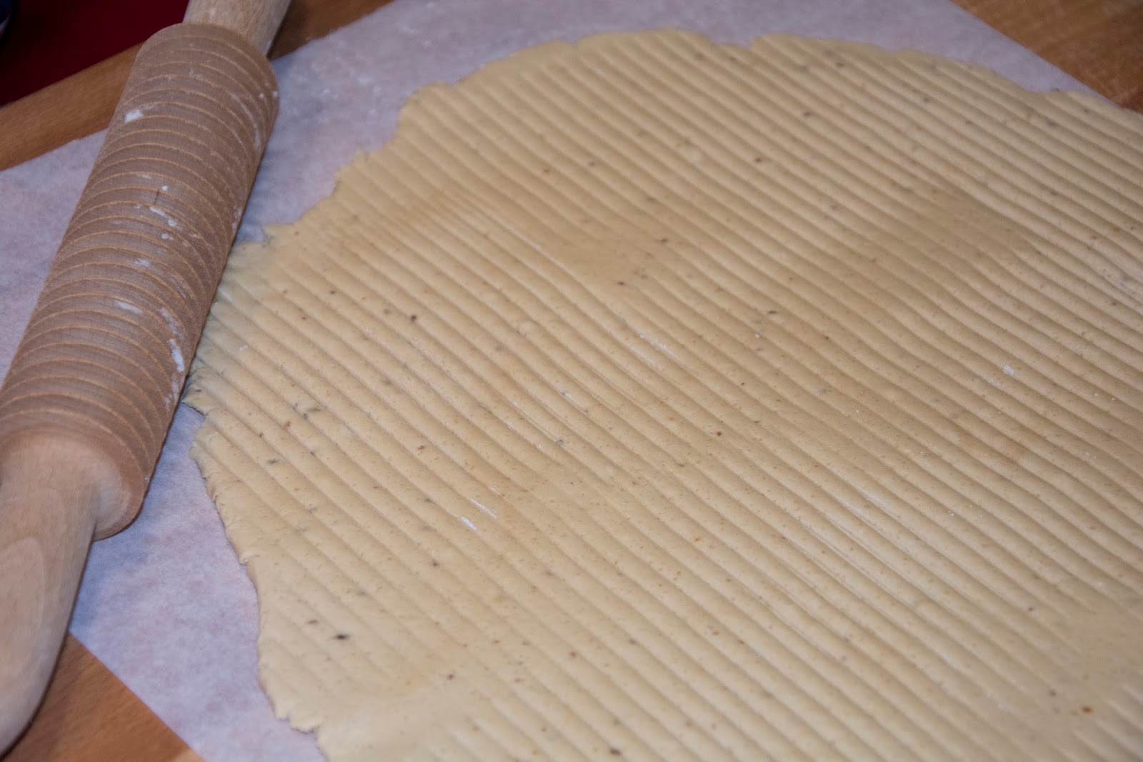 e poi passarvi sopra un mattarello per pici schiacciando leggermente