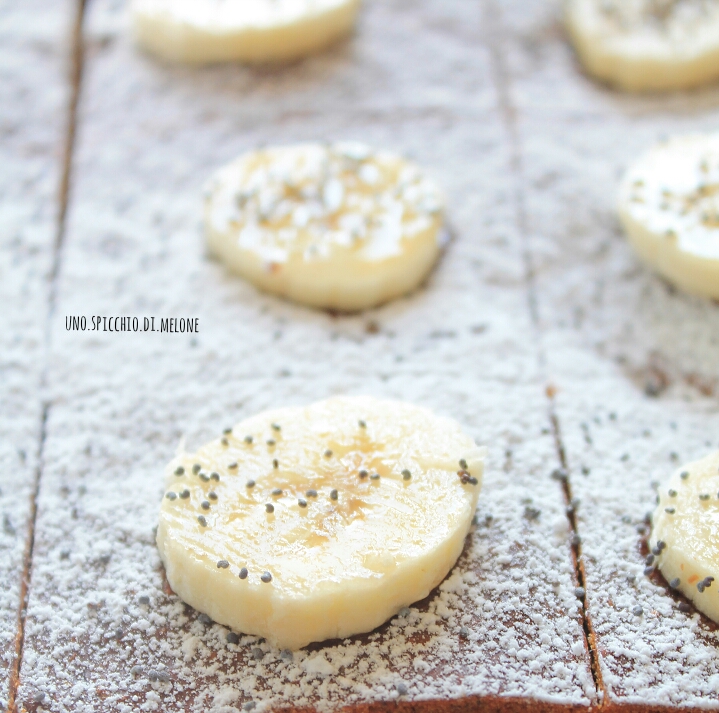Non dimenticatevi di dare il tocco finale: cospargete i dischi di banana con una manciata di semi di papavero! :-)
