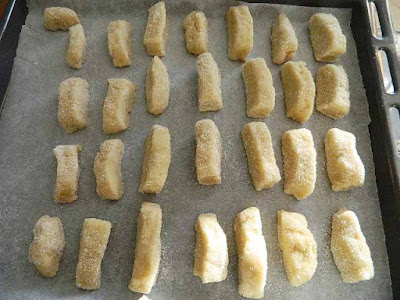 ed infine li poggiamo nella teglia da forno ricoperta di carta.