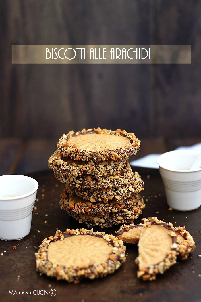 Quando i biscotti si saranno raffreddati potete intingere i bordi nel cioccolato fuso a bagnomaria e farli rotolare sulle arachidi tritate.