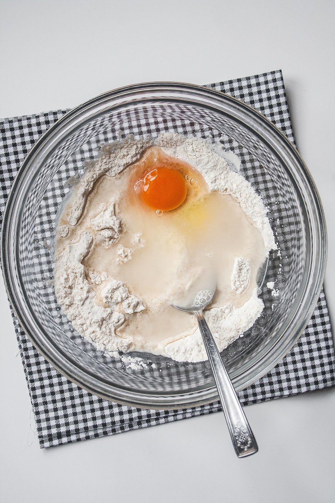 Mescolate con un cucchiaio, poi unite l’uovo, l’acqua e la bevanda alle mandorle e con le mani infarinate iniziate a lavorare l’impasto che dovrà risultare morbido e un po’ appiccicoso.
