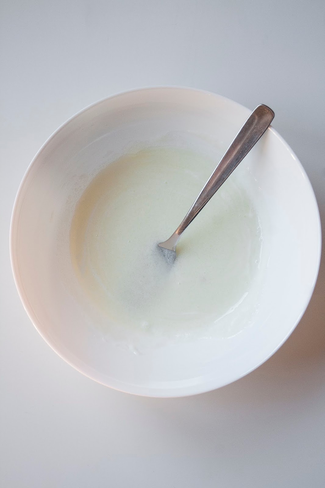 Mettete lo yogurt e lo zucchero semolato in una terrina e amalgamateli appena con una forchetta.