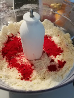 Unire ora lo zucchero e il colorante alimentare scelto, in questo caso rosso, e azionare ancora qualche secondo.