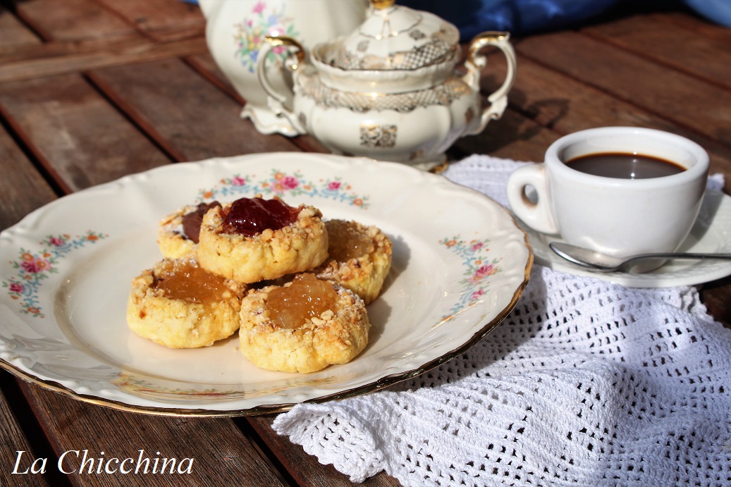 Ecco pronti i nostri biscotti con confettura e nocciole, ideali per una deliziosa colazione e ogni qualvolta si ha voglia di un bocconcino goloso.