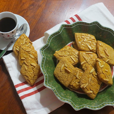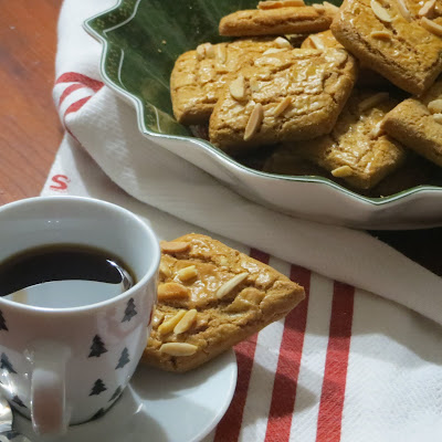 Stendete l’impasto di altezza 5 millimetri e ritagliate con l’aiuto di uno stampino per biscotti. Allineate i biscotti così formati sulla placca ricoperta da carta forno ricoprite con le lamelle di mandorla e cuocete a 180° in forno ventilato, per circa quindici minuti, fino a completa doratura. Sfornate e lasciate raffreddare. Conservate in barattoli di vetro o di latta.