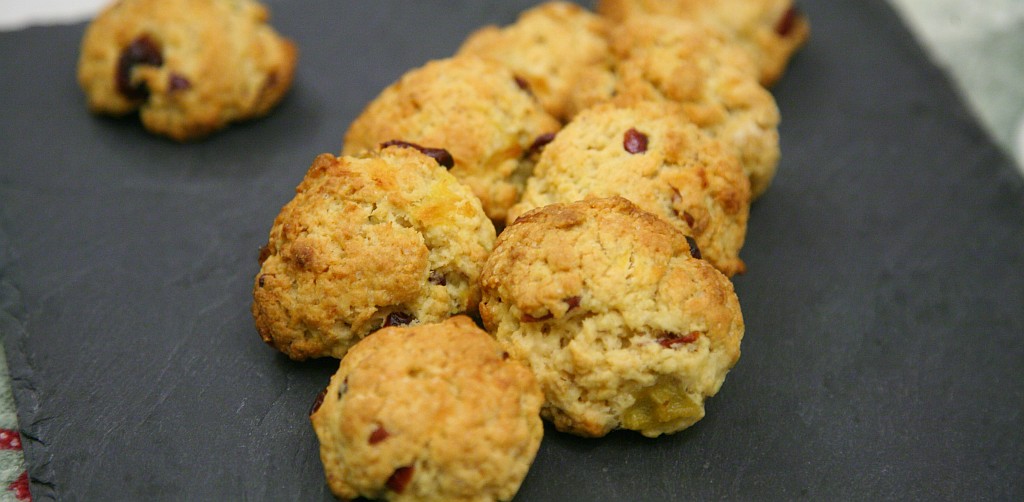 Oggi dei biscotti rustici ideali sia per chi è intollerante al lattosio sia per chi ha problemi con le uova.Sono realizzati con farina integrale, mele e ciliegie disidratate.