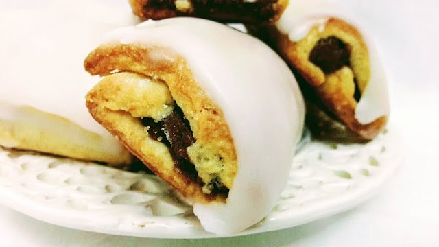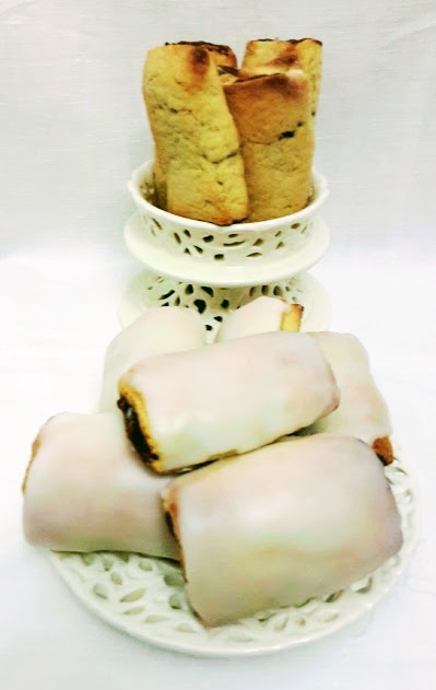 Arrotolare la pasta frolla fin quando si riesce a racchiudere per bene la farcitura avendo cura di inumidire leggermente il punto di giunzione e tagliare a pezzetti regolari…