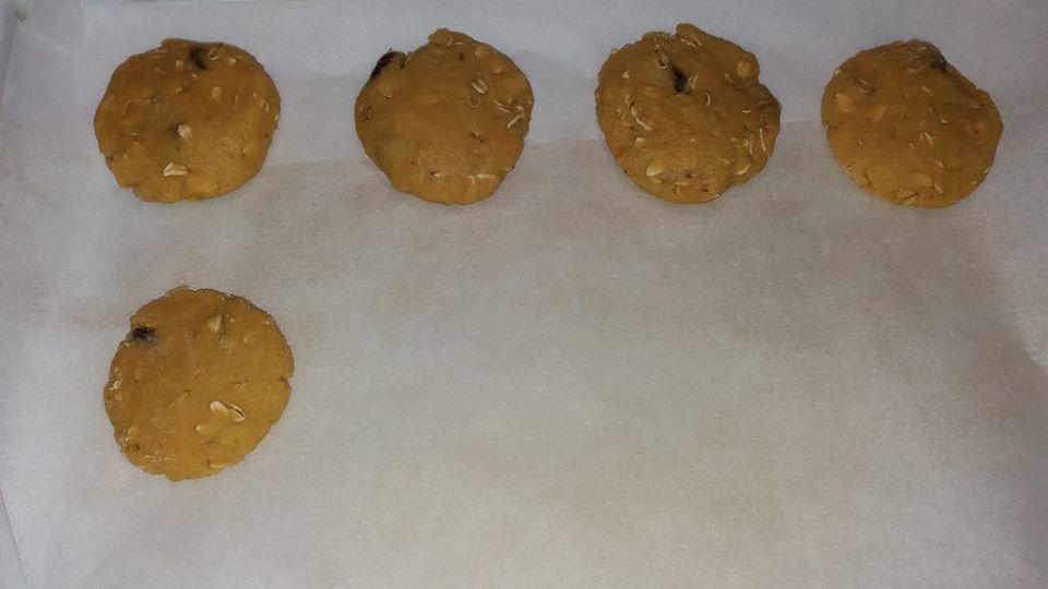 PROCEDIMENTO : In una ciotola mettete l’uovo e lo zucchero e sbattete con un frullino elettrico fino a far diventare il composto spumoso, aggiungete lo yogurt , l’olio , l’uvetta sultanina e i fiocchi d’avena ,amalgamate bene gli ingredienti al composto. Aggiungete a pioggia le farine e il lievito ottenendo un composto omogeneo e non appiccicoso. Togliete l’impasto dalla ciotola e ricopritela con la pellicola per alimenti e mettetela in frigo per circa 20 minuti. Riprendete l’impasto , ricoprite una teglia con carta da forno, iniziate a dare forma ai vostri biscotti . Disponeteli sulla teglia da forno distanziandoli in quanto cresceranno in cottura. Cuocere in forno già caldo a 180°C ventilato per 20 minuti, i biscotti dovranno risultare dorati e morbidi.