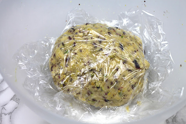 Amalgamate bene gli ingredienti appena tritati con la farina “ingrassata”. Poi unite l’uovo. Impastate. Coprite con pellicola e mettete in frigo a raffreddare per circa un’ora.