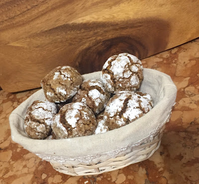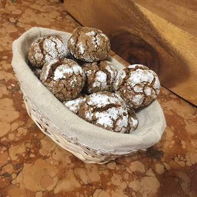 Debbo comunque precisare che questa non è la ricetta originale dei brownie crinckle cookies noti come Biscotti craquelè, ma una mia rivisitazione se non addirittura uno stravolgimento. Nell’impasto non c’è farina ma unicamente frutta secca al sapore di caffè.