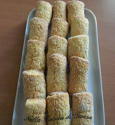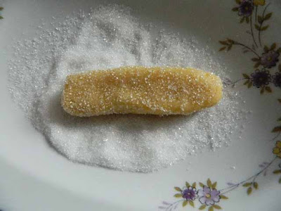 schiacciare i bastoncini appena un pò poi passarli nello zucchero