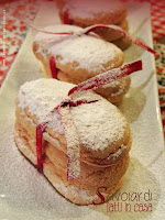 - Girate fino ad ottenere un composto ben montato, deve risultare spumoso, quindi unite la farina 00 e la fecola che dovrete aver stacciato. Girate il composto il minimo indispensabile a incorporare le farine.
