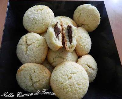 meglio ancora con due forme una più grande dell’altra di 1 cm. Al centro di ogni formina mettere un cucchiaino abbondante di Nocciolata
