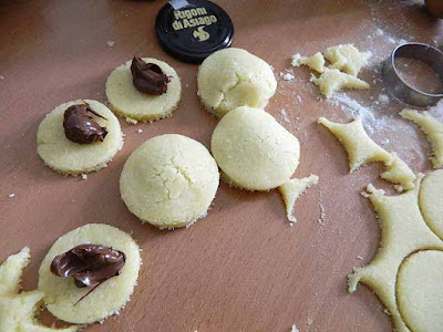 meglio ancora con due forme una più grande dell’altra di 1 cm. Al centro di ogni formina mettere un cucchiaino abbondante di Nocciolata