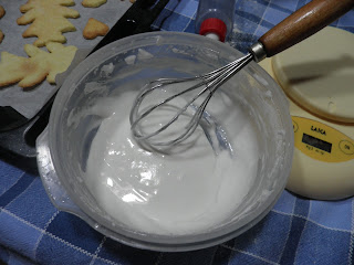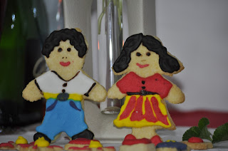 Intanto preparare una ghiaccia con zucchero a velo , pochissimo albume montato a neve ( due cucchiai) e succo di limone. Mescolare fino ad ottenere un impasto che fa il “filo”. Dividete l’impasto in tante ciotoline quanti sono i colori che volete ottenere ( io ho usato coloranti alimentari in polvere). Con una spatolina o una siringa per dolci con la bocchetta sottile decoriamo i nostri bimbi a nostro piacimento. Per il marrone ho usato il cioccolato fondente che è un ingrediente fondamentale quando c’è di mezzo l’amore.