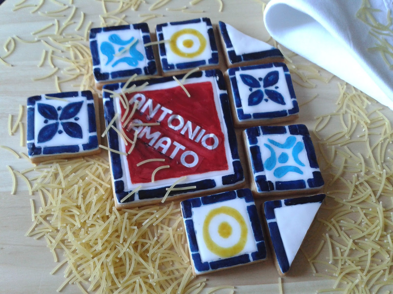 Sono biscotti di frolla ricoperti di pasta di zucchero e dipinti a mano.