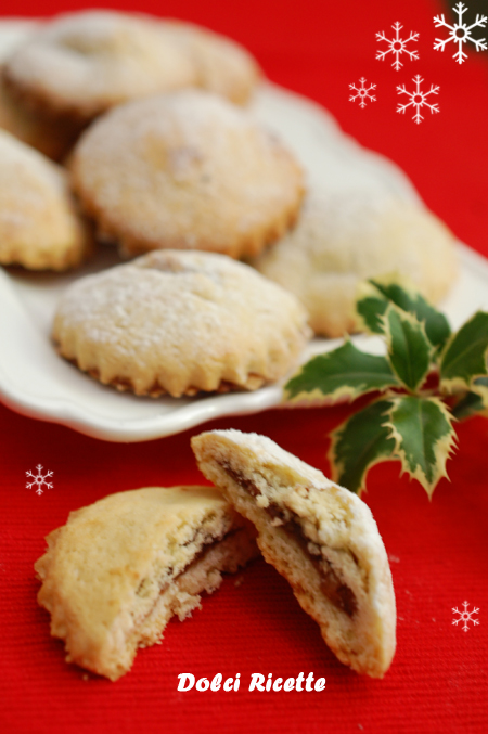 Infarinare leggermente la spianatoia e stendere l’impasto non troppo sottile ma neppure troppo alto, ricavare dei dischetti di circa 5 cm di diametro e iniziare a comporre i biscotti. Inserire nel centro del dischetto coppato un po’ del composto di pere preparato precedentemente (scolare ancora l’eventuale succo rilasciato) non mettetene troppo altrimenti si apriranno i lati in cottura, e poi adagiarvi sopra un altro dischetto e chiuderli bene facendo pressione con le dita.