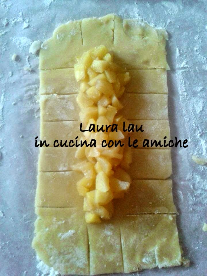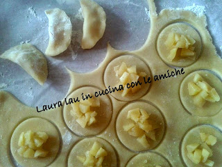 Riempi con la mela e chiudi formando una mezza luna oppure usa un disco di frolla messo sopra. Chiudi bene i bordi!