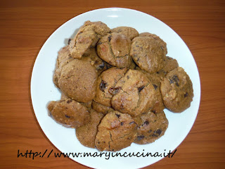 Tritare banana e mandorle, impastare tutti gli ingredienti. Tagliare finemente il cioccolato, mi raccomando assicuratevi che sia fondente vero senza burro anidro o altri derivati del latte, alcune ditte poco serie lo infilano dappertutto perchè il latte di mucca crea dipendenza. Distribuire l’impasto a cucchiaiate su una teglia con cartaforno. Cuocere in forno a 180° per 20 minuti.