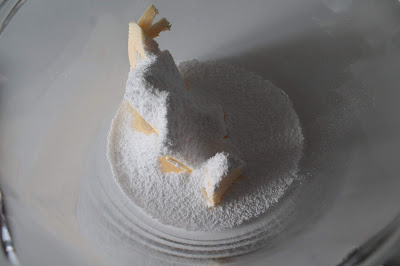 - In una ciotola capiente lavoriamo il burro con lo zucchero a velo.