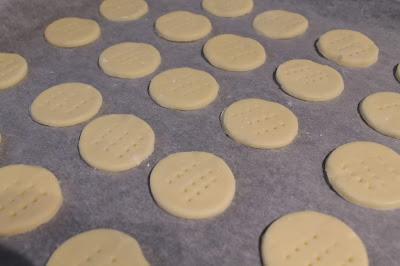 Riprendiamo l’impasto e stendiamolo su di una spianatoia infarinata fino ad ottenere una sfoglia di circa mezzo centimetro di spessore. Ricaviamo dei dischetti e bucherelliamoli con una forchetta.