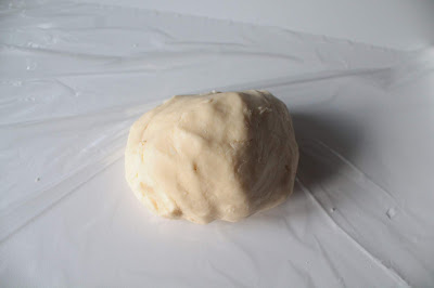 - Poniamo il panetto ottenuto in un foglio di pellicola e mettiamolo in frigo per 10 minuti, intanto preriscaldiamo il forno a 170° in modalità statica.