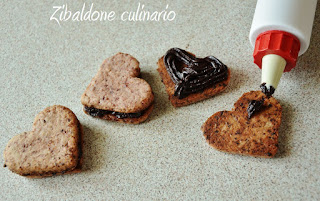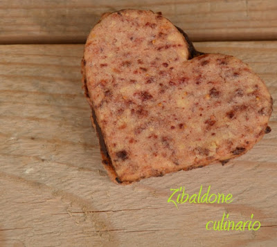Togliere dal frigo attendere circa 5 minuti e poi rendere plastica la frolla con un leggero impasto, sfogliare con il mattarello allo spessore di circa 4mm, tagliare con le formine a cuore.