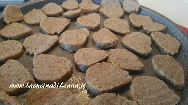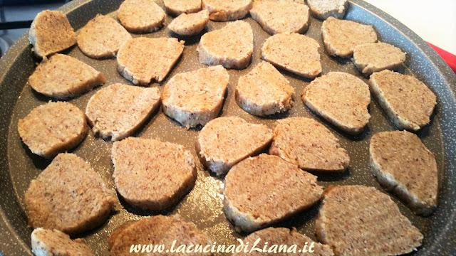 Riprendere l’impasto e affettarlo a rondelle spesse mezzo centimetro. Disporle su una teglia antiaderente unta o ricoperta di carta forno, e infornare nel forno preriscaldato a 180° per 20 minuti.