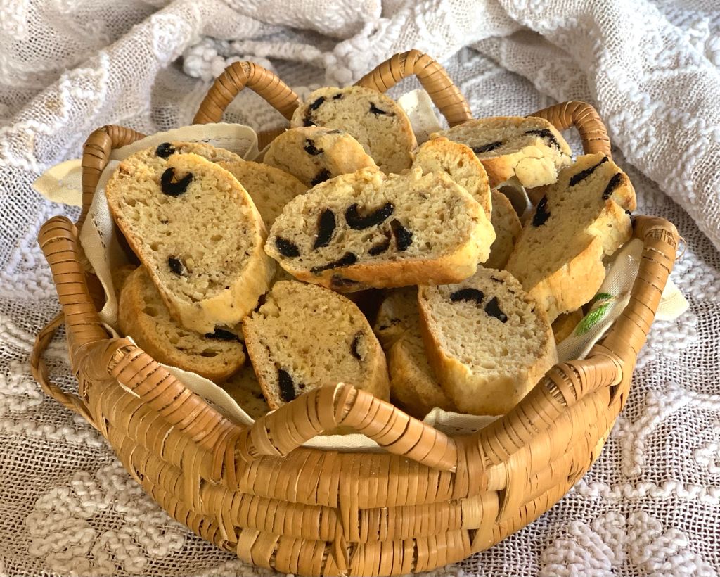 Tagliate le olive a pezzetti dopo averle denocciolate. In una ciotola versate le farine, il lievito, il pecorino grattugiato, l’olio, l’origano, il peperoncino, il sale, le olive e le uova sbattute. Impastate con le mani formando un panetto compatto, se necessario aggiungete un pò di latte. Dall’impasto ricavate dei filoncini, adagiateli nella teglia rivestita con carta forno e spennellateli con l’olio evo. Infornateli a 180° per 25 minuti circa. Appena pronti e intiepiditi tagliateli a fette come i classici cantucci e fateli tostare per 10 minuti a 170°.