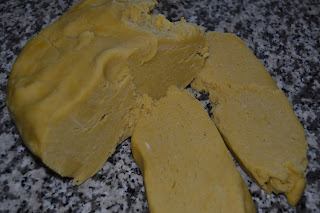Stendere l’impasto sul piano di lavoro (meglio di marmo o granito) con il mattarello, aiutandosi con poca farina (oppure stendere tra due fogli di carta da forno): si deve ottenere una sfoglia alta circa 1/2 cm.