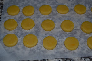 Ritagliare i biscotti con uno stampino di forma rotonda con diametri di 2 cm e disporli su una teglia ricoperta con carta da forno.