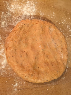 Con una forchetta mescolare gli ingredienti fino a quando iniziano ad amalgamare e poi trasferire in composto sulla spianatoia leggermente infarinata.