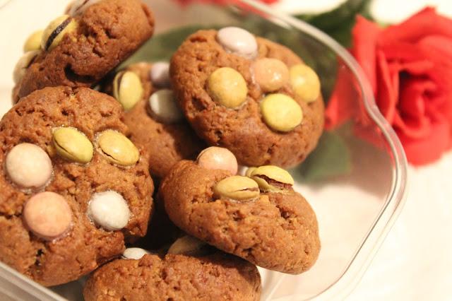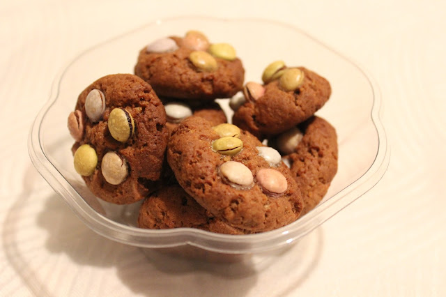 Tirare fuori l’impasto, prendere pezzi quanto una noce, formare delle palline, metterle su una teglia foderata con carta da forno e decorare sopra con dei confetti colorati, per me erano di avanzo anche questi e volevo smaltirli.
