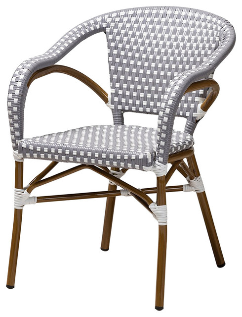 Classic French Indoor Outdoor Gray Bamboo Style Stackable Bistro Dining Chair 2