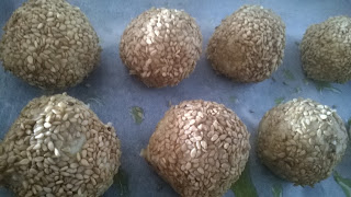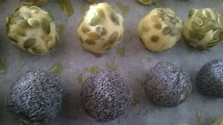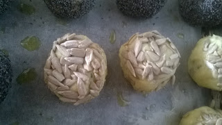 Formate con le mani delle palline grosse come una noce e rotolatele nei semi che più vi piacciono. Io ho usato semi di girasole, di zucca, di papavero, di sesamo, mandorle e pistacchi. Posizionate le palline su una placca da forno rivestita di carta leggermente oleata; versate un filo di olio extravergine d’oliva anche sulle palline. Infornate a 180° per 20 minuti in modo che i semi si possano tostare. Servite calde.