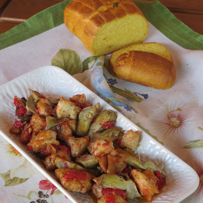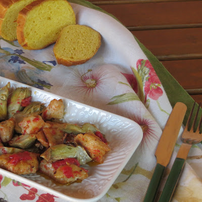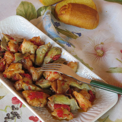 E’ una ricetta semplice e leggera, adatta a molte occasioni, una ricetta di carne bianca facile e veloce, un piatto unico saporito e sfizioso. Questi bocconcini di pollo ai carciofi e funghi sono un secondo piatto semplice e sfizioso, una ricetta facile e veloce per gustare il petto di pollo in maniera diversa dal solito. I bocconcini vengono leggermente infarinati, poi cotti brevemente in padella con un po’ di vino bianco. Si aggiungono i carciofi e i funghi, tagliati a tocchetti, si cuociono in pochi minuti profumando la carne con un sapore unico.