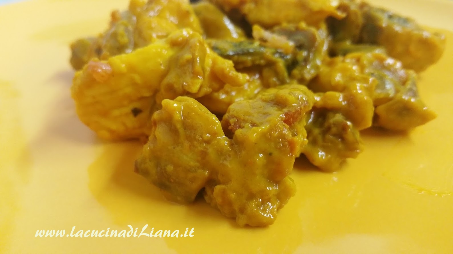 Ricetta buonissima per un secondo a base di Pollo, con pancetta croccante, funghetti trifolati e una prelibata salsa a base di panna e curcuma.