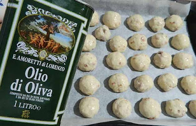 e staccare dei pezzetti tali da formare dei bocconcini grossi quanto una noce, mettere i Bocconcini Rustici all’Olio sulla teglia foderata di carta da forno,