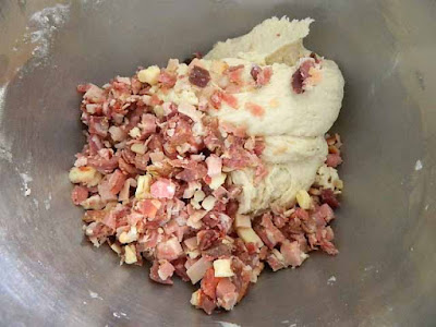in ultimo direttamente sulla farina un pizzico di sale, impastare fino ad ottenere un impasto morbido e compatto. A questo punto aggiungere il misto di salumi all’impasto